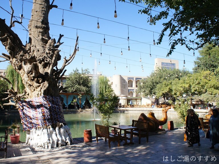 短いブハラ滞在で、見所をできるだけたくさん見よう!とギュウギュウに詰め込んだ「欲張り歴史地区観光」もいよいよ終盤です。NHKの「世界ふれあい街歩き」でいうところの、夕暮れに音楽が流れるあたり。