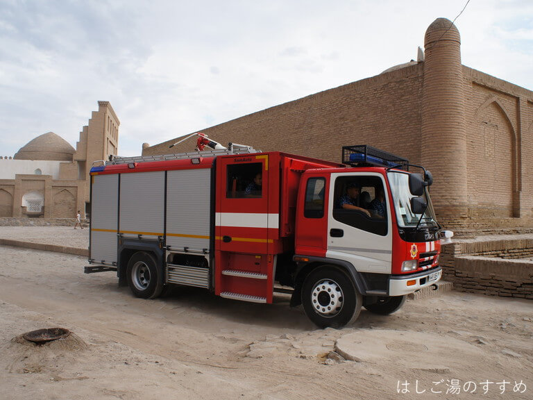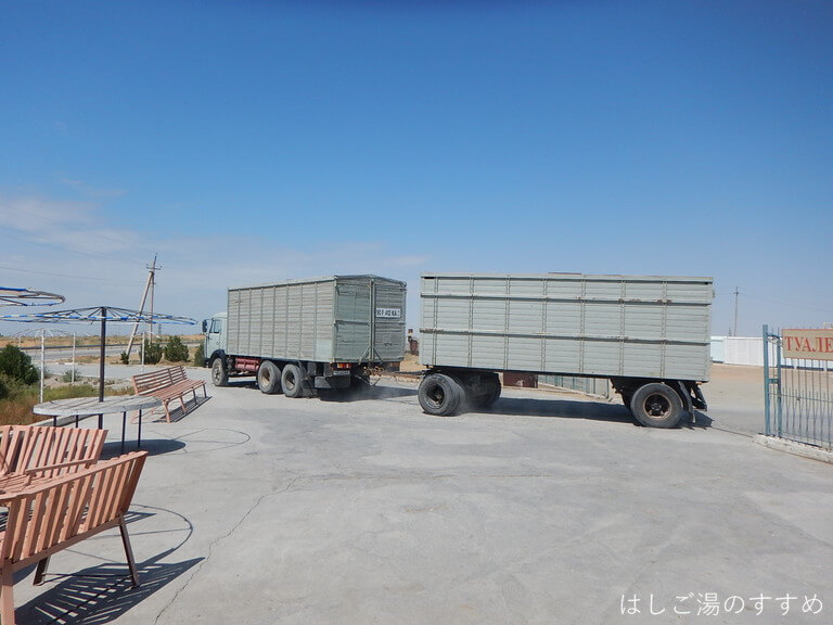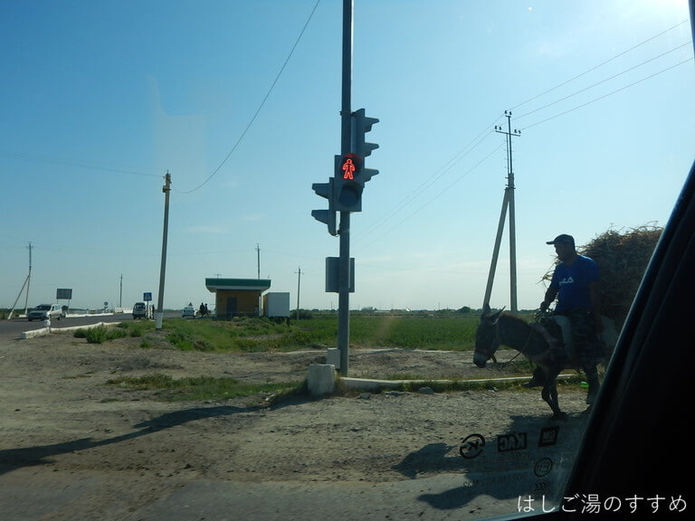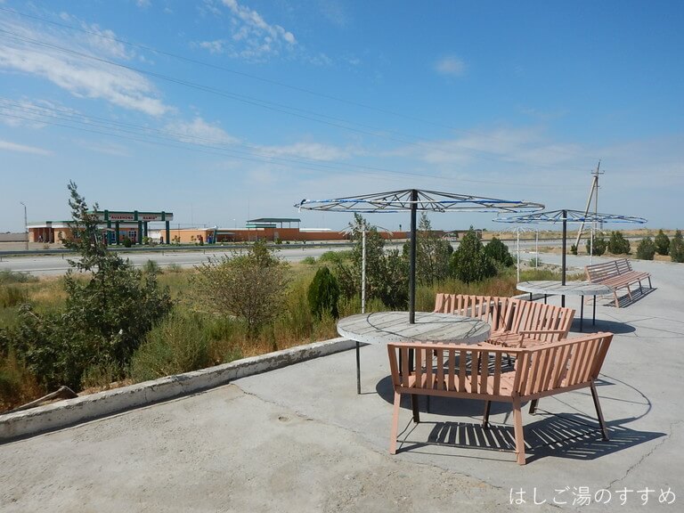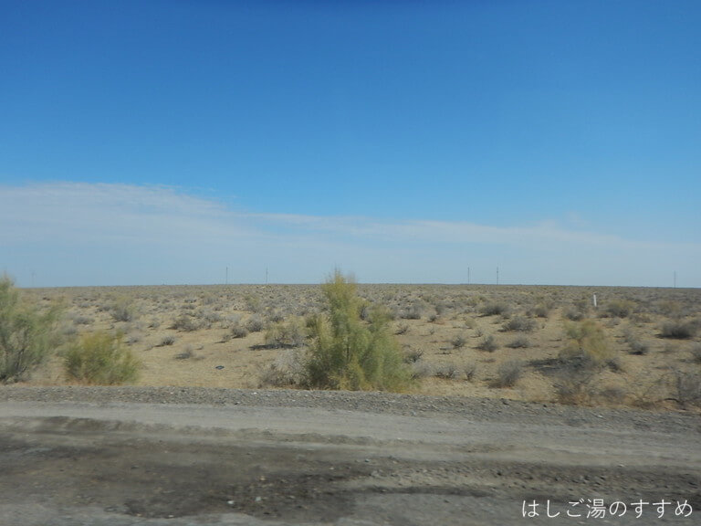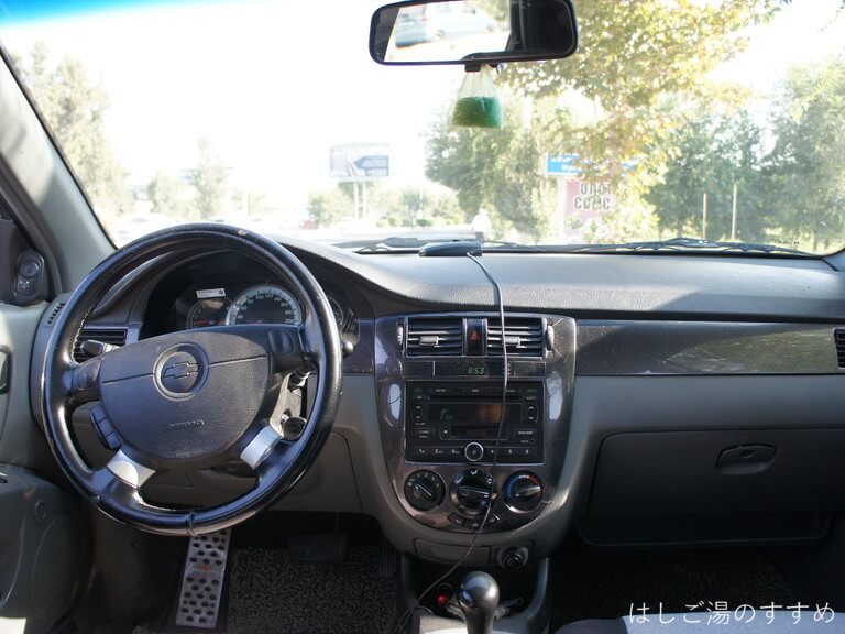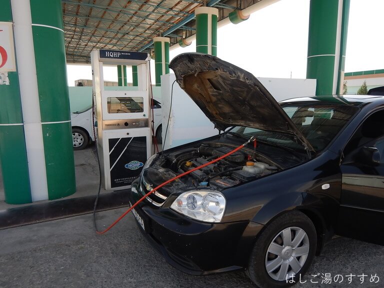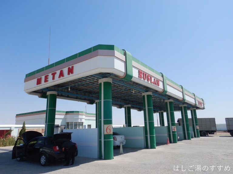 途中でガススタンドに立ち寄りました。一番端の6番に停まっているのが今日お世話になっている、ウズベキスタンではお馴染み過ぎるシボレーです。「なんでウズベキスタンはシボレーばっかりなの?」と聞いたら「工場がある」らしいですよ。