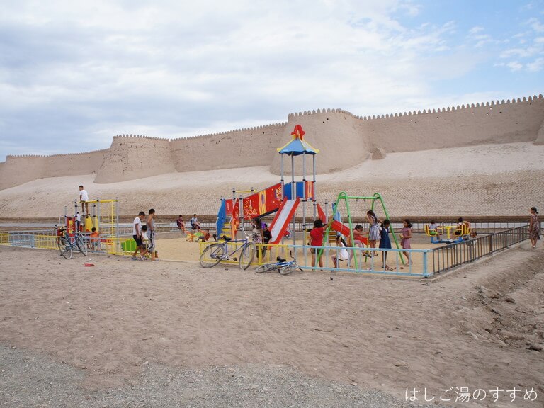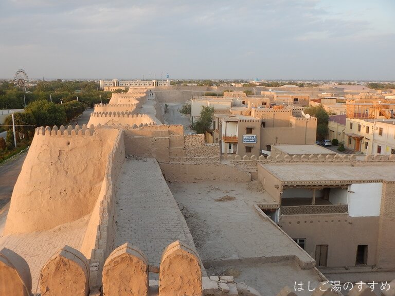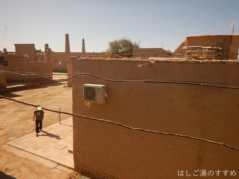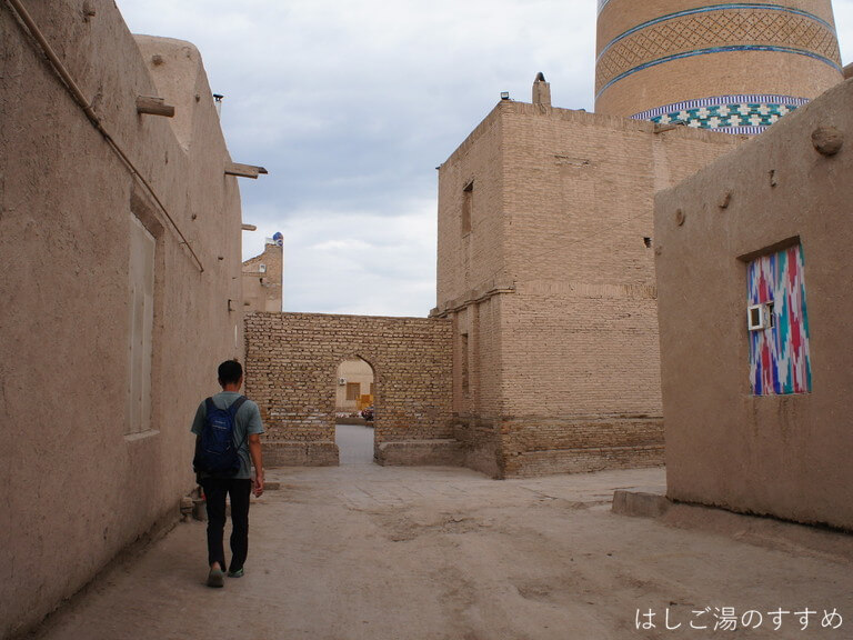 ヒヴァ観光の中心は、大きな二重の城壁に囲まれた旧市街で、今回お世話になるホステルもその一画に位置していました。