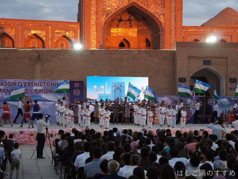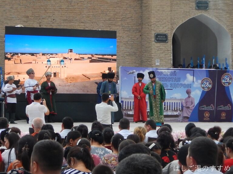 看板から想像すると、建国記念日に関係するイベントかな?訪問した2019年は数え間違えがなければ、ウズベキスタンが旧ソから独立宣言して28年目。