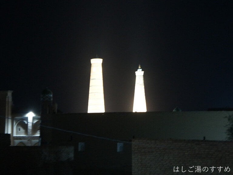 ヒヴァの夜は静かに更けてゆきます。明日はヒヴァの旧市街をいろいろ見て歩く予定。(楽しみだぁ)