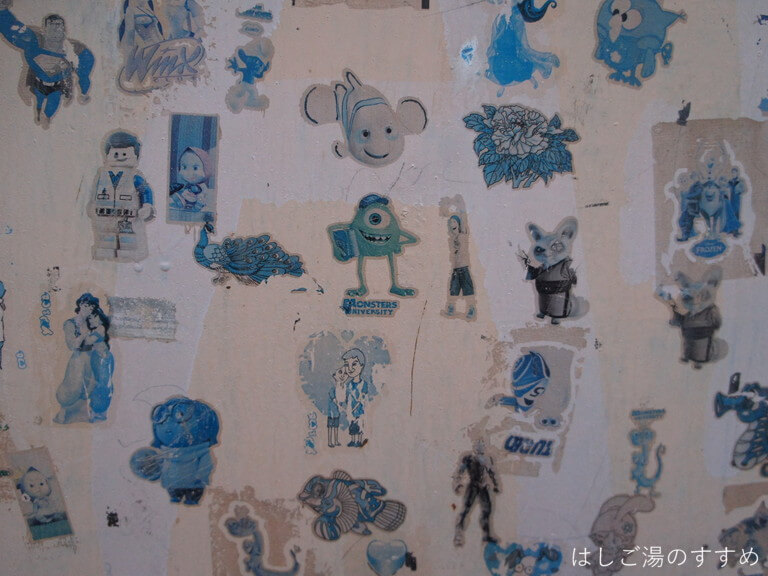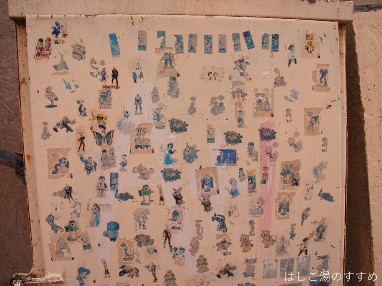 シールペタペタコーナー。「家具や柱にはシール貼っちゃダメ、ここならいいよ」の、フリーエリア。