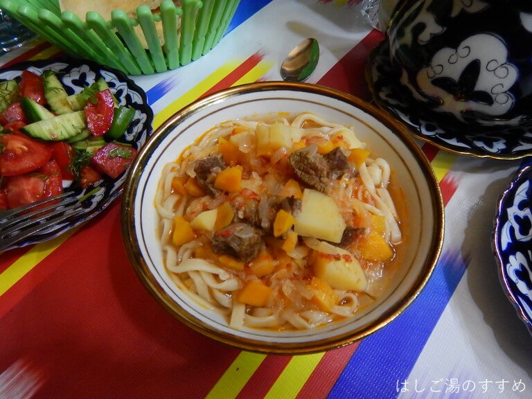 中央アジアのうどん、具沢山のラグマン。ラダックで食べまくったトゥクパに似てる。