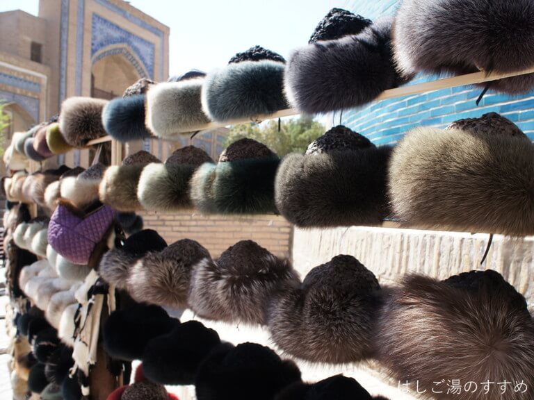 昨夜のイベントで舞台上の男性達がかぶっていた帽子に似てる。ヒヴァ周辺の伝統的な帽子なのかな?