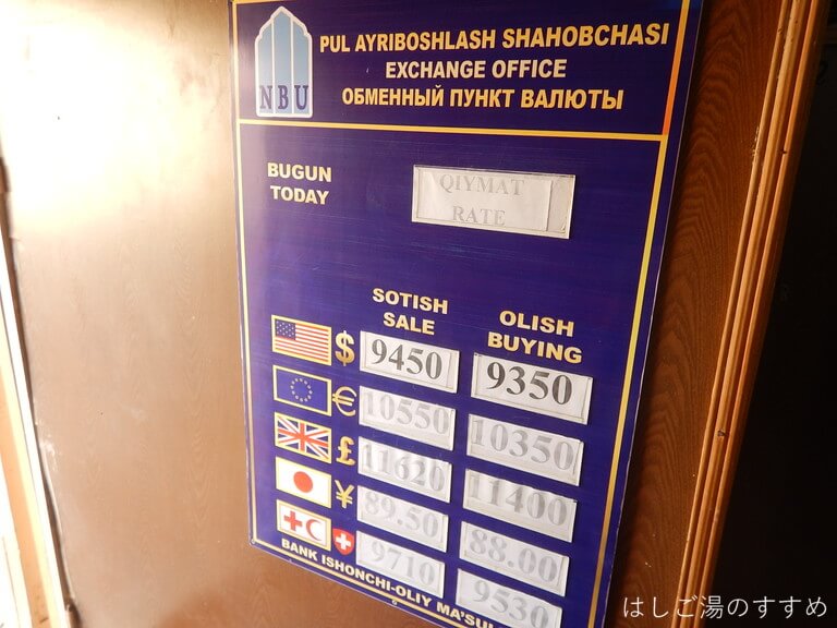 手持ちのスムが乏しくなってきたので、西門近くのムハンマド・アミン・ハーン・マドラサ(オリエントスターH)の入口並びにある両替屋で入国以来の円→スムチェンジ。