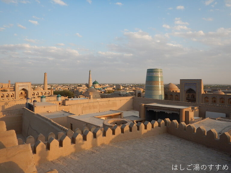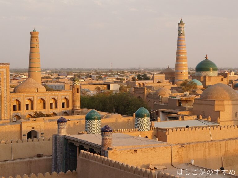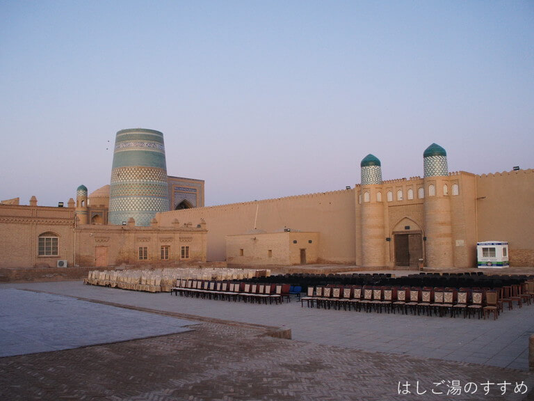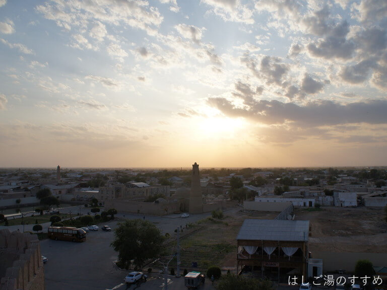 ヒヴァ最後の夕暮れにふさわしい眺めとなりました。…はて?最後の夕暮れ?ヒヴァには昨日来たばかりなのに!?