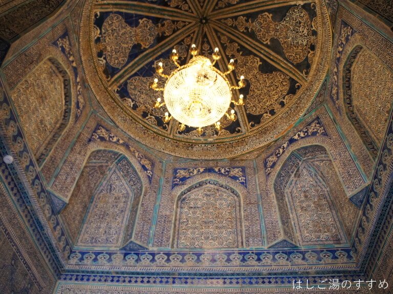 天井の模様が、ドームの上に乗ってる黄金の瓢箪型と同じデザイン。何か意味のある模様なのかなぁ?
