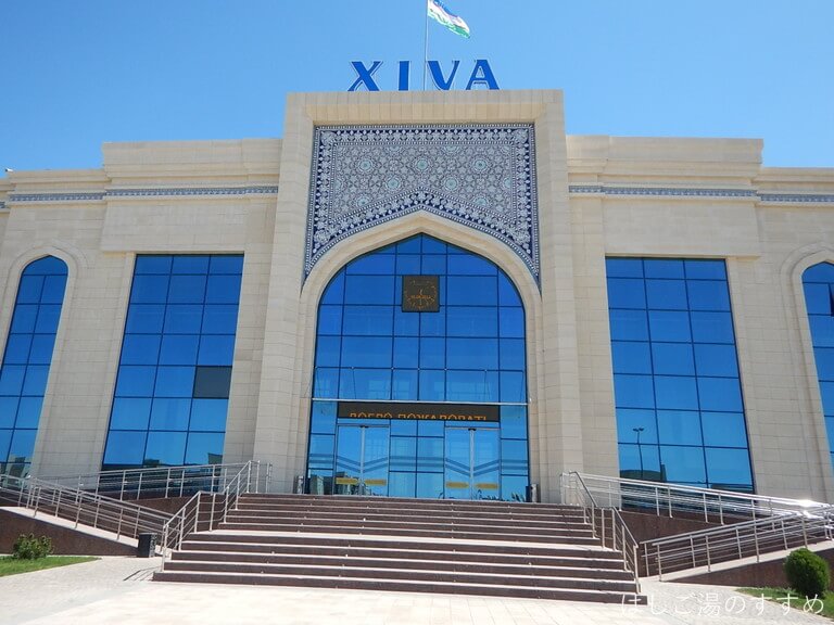 そして乗車当日。2019年8月時点でオープンしてまだ間もない、ピッカピカのヒヴァ駅です。