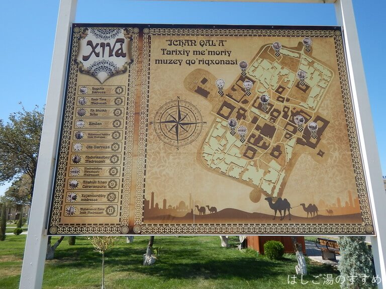 旧市街イチャン・カラの見どころパネルが、あちらこちらに飾られていました。