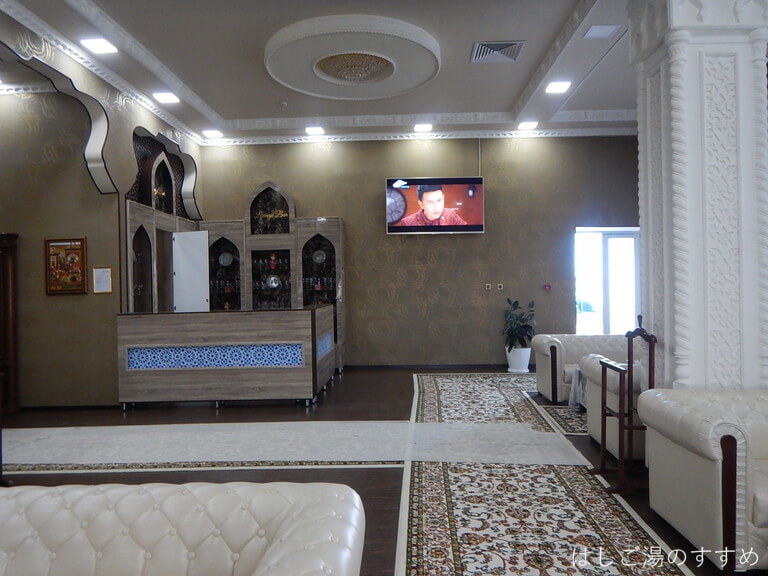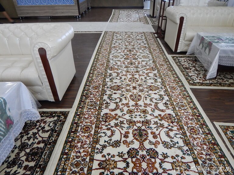 やや広めの空間にウズベキスタンの民芸品等が飾られ、落ち着いた雰囲気。