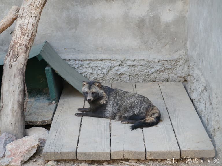再び屋外。なんと、タヌキがいました。タヌキには日本語が通じませんでした。