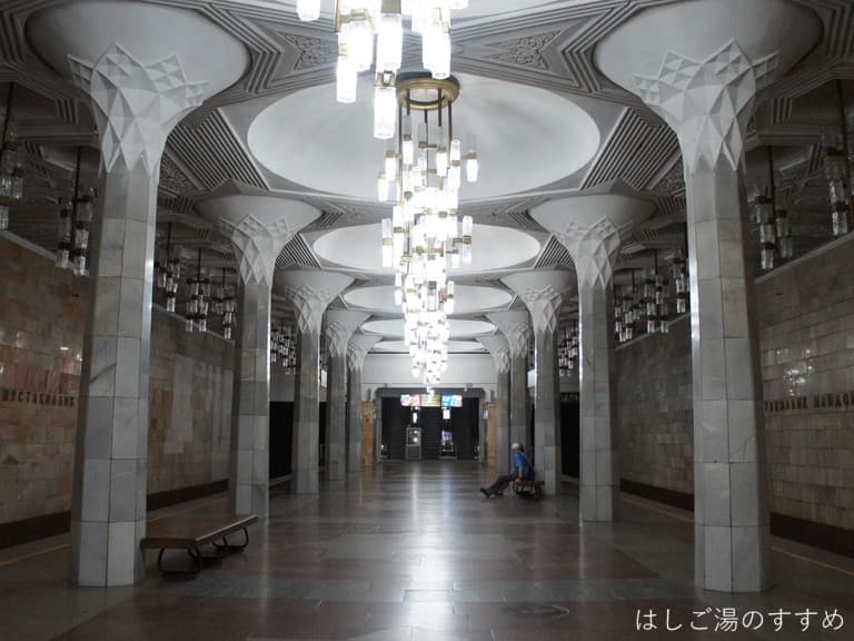 以前は旧ソ時代の国民的英雄サビル・ラヒモフ氏と同じ駅名でしたが「あばよ旧ソキャンペーン」の一環で、現在のオルマゾール駅に改名されたようです。