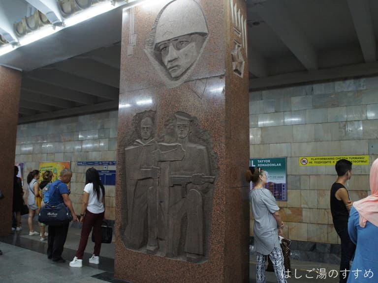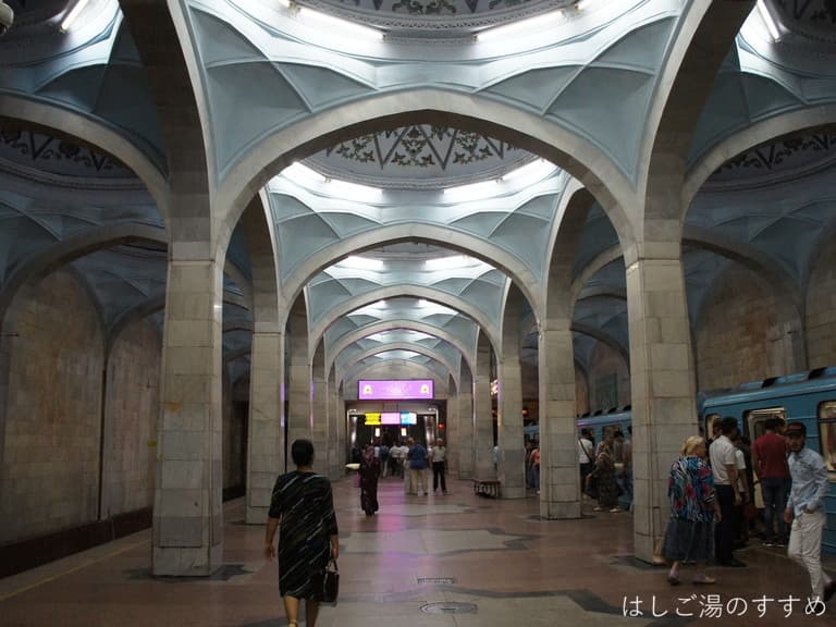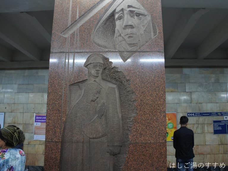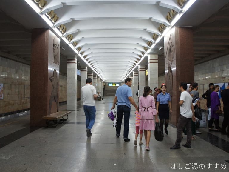 タシュケント散策の大トリ「地下鉄の駅めぐり」です。タシュケントの地下鉄はそれぞれ趣向を凝らした芸術的要素が強いらしく、せっかくなので見に行って来ました。