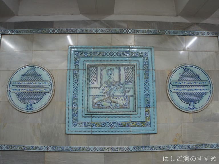 ホームの壁に飾られた数々の作品は、ナヴォイの代表作「ハムサ」をテーマに著名な芸術家が作り上げたそうです。