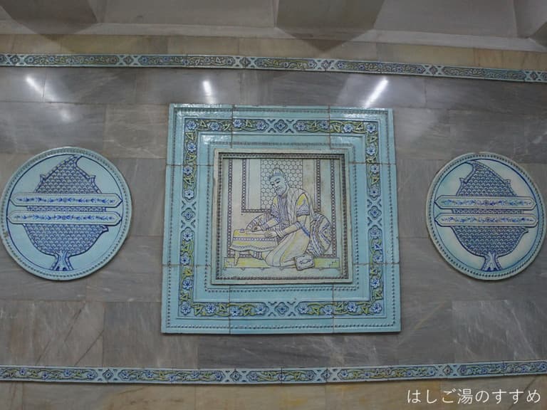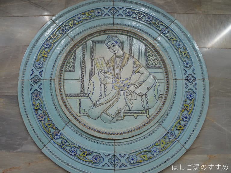 地下に下りるエレベーターの前に立派で繊細なモザイク画がありました。