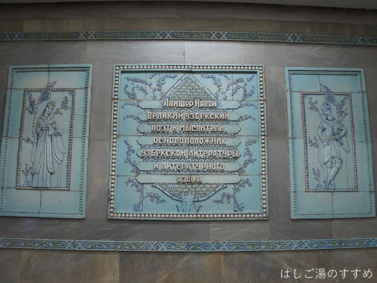 ウズベキスタン古典文学の創始者、詩人で政治家でもあったアリシェル・ナヴォイの名前が付いた駅です。…ん?ナヴォイ?そうです、あのナヴォイ劇場もこの先生から名前が付けられました。
