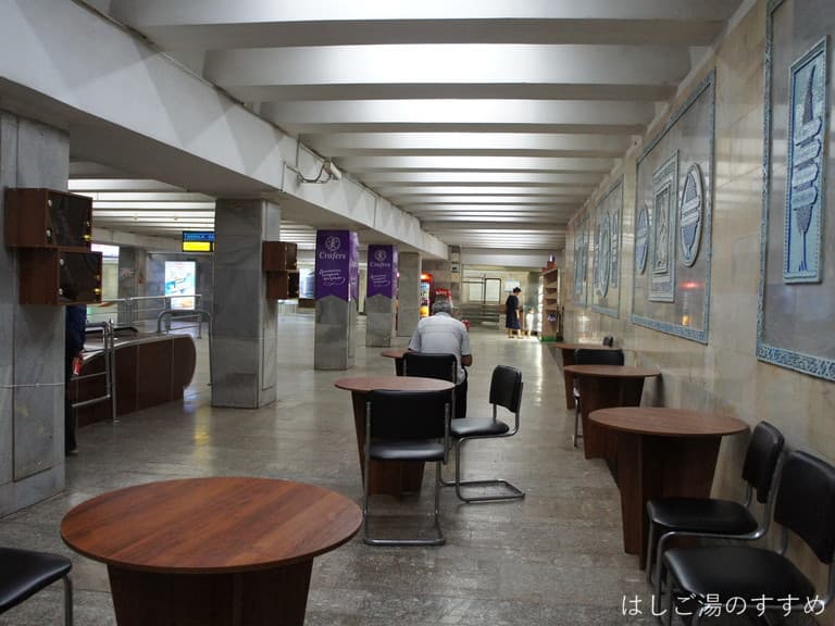 今後ウズベキスタンが旧ソ色を消す方向に進むとなったら、もしかしてこの駅はいずれ改装されるのかな…と思いつつ。