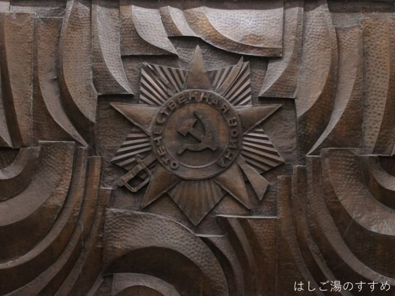 旧名でもあった第二次世界大戦で活躍したサビル・ラヒモフがテーマになっていて、いくつか巡った地下鉄の駅の中でも、ちょっと異色の空気が漂っていました。