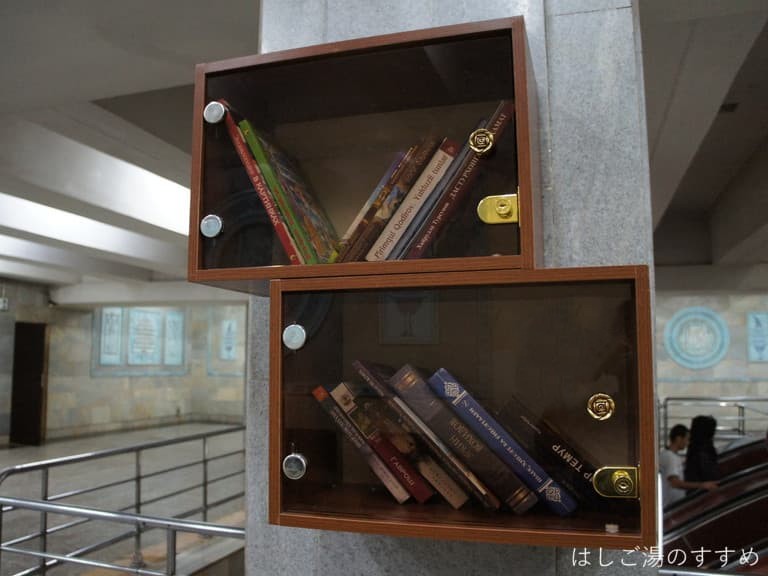 中を見ると本が入ってました。これって手に取って読んでいいのかな??それとも施錠されて展示されてるだけかな?(ビビって確認できなかった)