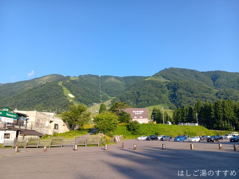 エスカルプラザ敷地内にある舗装された綺麗な駐車場です。ウインターシーズンに大挙して押し寄せる、スキー・スノボのお客さんに対応してなのか、とても広々していて土曜日朝6時の時点でもまだガラガラ、翌日の下山時もガラガラでした。