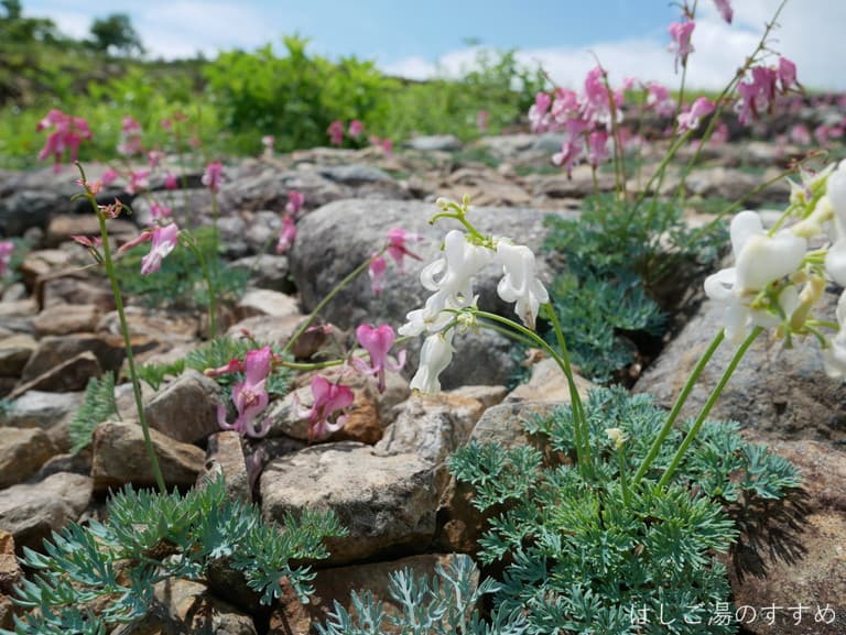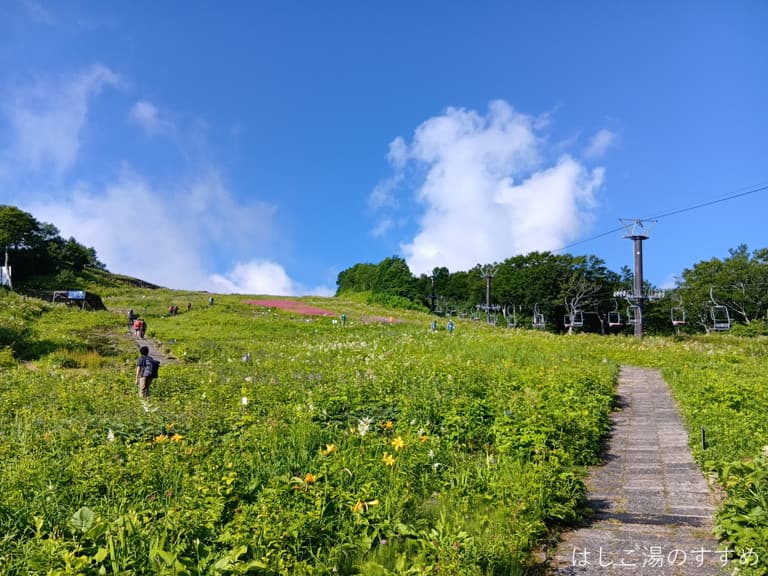 遠見尾根コースの登山道本格スタートは、山の上にある「白馬五竜高山植物園」のさらに先「地蔵ノ頭」から。