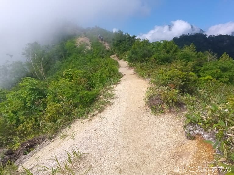 登山道だけみればかなり快適な遠見尾根ですが、とにかく本当にむちゃくちゃ蒸し暑かったです。熱中症でぶっ倒れる人が続出してもおかしくないレベル。