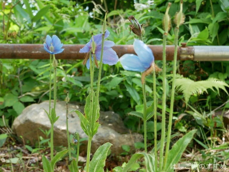 見たかったヒマラヤの青いケシは、ピークが過ぎていたみたいで、しおれかけが数輪。