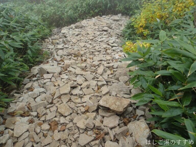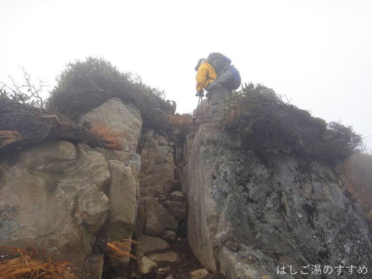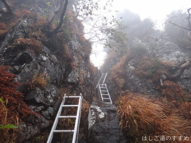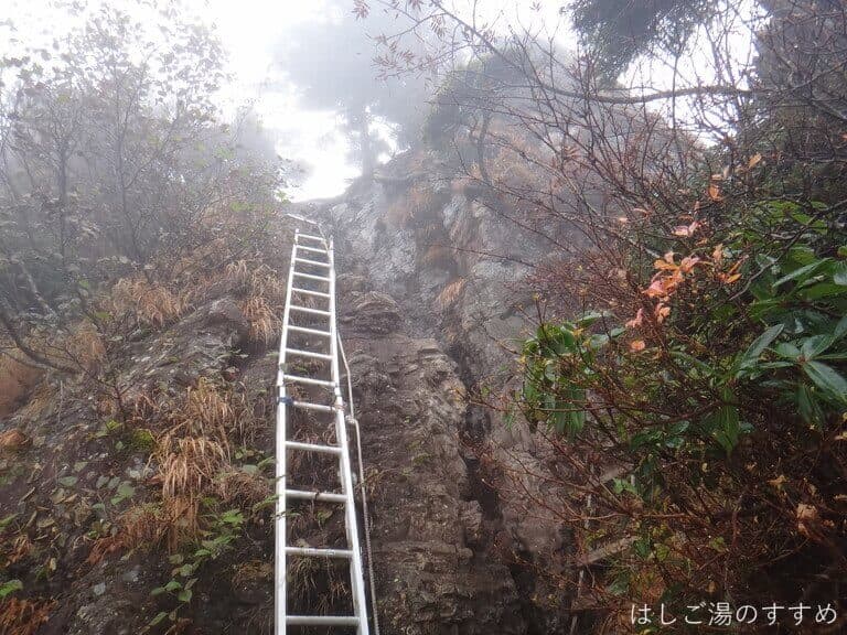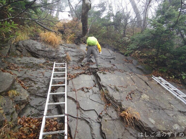 「なんてサービスのいい登山道なんだろう!さすが百名山ブランド!!」と感心していたら、実は少し前に、なんちゃらトレイルの大会があって、その時に設置された梯子がそのままになっていたらしい。