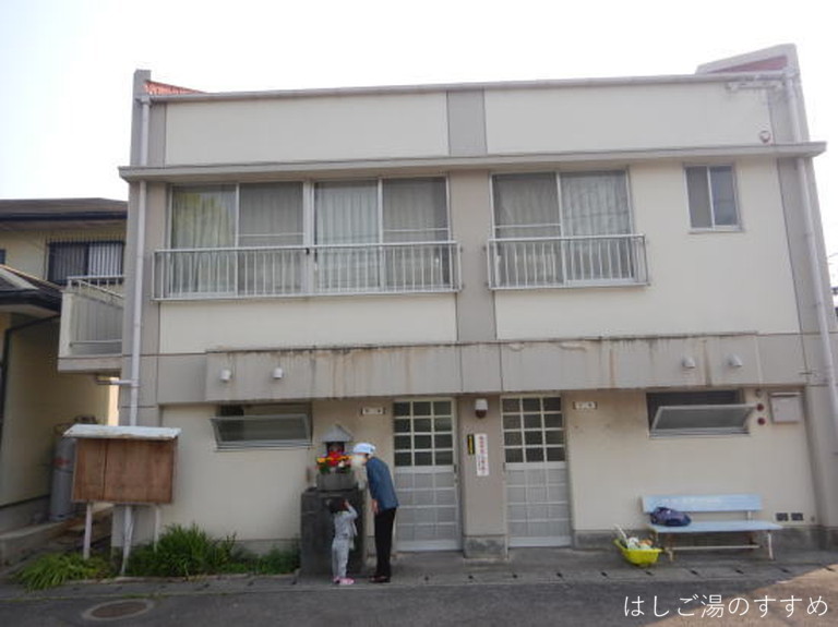 海岸沿いを走る国道10号線から少しだけ海の反対側に入った住宅街の中にある地元民専用浴場です。目立たない佇まいで看板もなく最初はここが浴場だと気が付かなかったのですが、男女の入口で気が付きました。