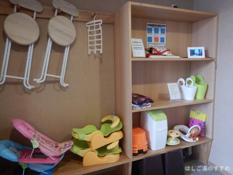 フロントにて受付、入浴料は一人600円。浴室は二階にあるのでエレベーターか階段で向かいます。廊下突き当たりに男女浴室入口があって、その手前左側にちょっとした待ち合わせスペースと図書コーナーがありました。