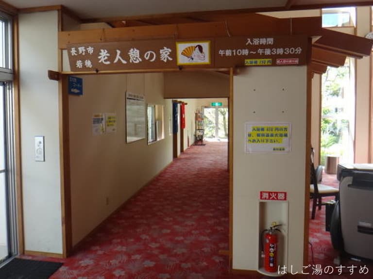 久しぶりに再訪した。前とは経営者が変わったのか国民宿舎では無くなっていた。現在では社会福祉施設運営のかたわらで、日帰り温泉もやっているのでしょうか?詳しくはわかりませんが。。。玄関を入り券売機があるのでそこで利用券を購入、それを受付に手渡しする。大浴場へは左手方向に進む。右手方向には長野市の高齢者福祉専用の温泉浴槽があるが、一般の方は利用できないのでご注意を。