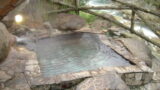 白湯花の付着した湯口より熱めの湯が流し込まれ、ごくごくわずかな差し水も。浴槽内で適温~やや熱め、無色透明な中に細かな白湯花が少量浮遊しているのが見えます。浴槽縁全体から静かに湯が溢れ出る掛け流し。鮮度の良い湯は肌への染み入り感が心地よい。一口含むと薄タマゴ味。湯面より仄かに漂うタマゴ臭もなかなかです。