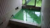 浴室には以前と変わらない長方形浴槽がひとつあります。前回訪問時は5人サイズと記してましたが、あらためて見てみるとゆったり浸かって3人、つめて4人という感じでした。湯口からギリギリ触れるくらいの熱い源泉が投入され、浴槽内で熱すぎずぬるくなくの丁度いい適温で掛け流されていました(男湯はぬるかったとのことですが)。スッキリと綺麗に澄んだ透明湯で、お湯を入れ替えたばかりなのか鮮度もとても良いです。久々に浸かった湯宿の湯は、やっぱりいいなぁー。