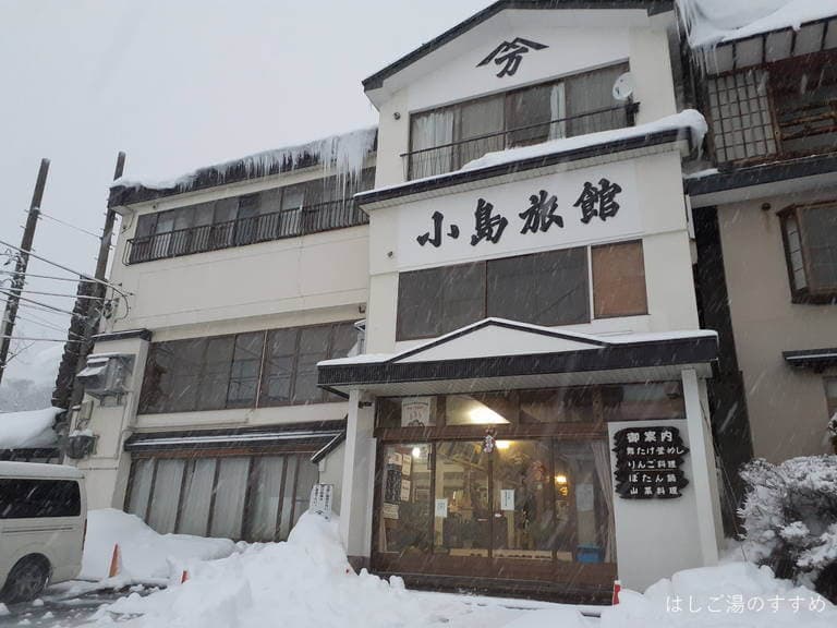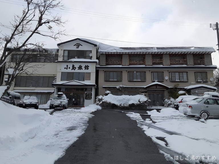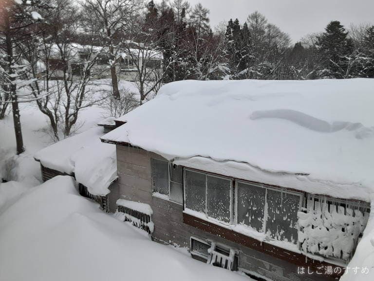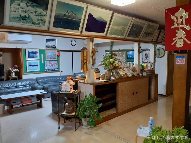 なんと16年ぶりの再訪です。前回の訪問では立ち寄り利用でしたが、その時の木材を多用した風情ある浴室にたっぷりと掛け流される嶽の白濁した湯が忘れられず「今度行くときは宿泊」と決めていました。その今度に16年もかかってしまいましたが、ようやく念願かなっての宿泊です。訪問時はかなりの暴風雪で、お宿の前の駐車スペースに車を停め逃げるように玄関に飛び込みました。玄関ではガッチリとした体格のいい若旦那が迎え入れてくれました。