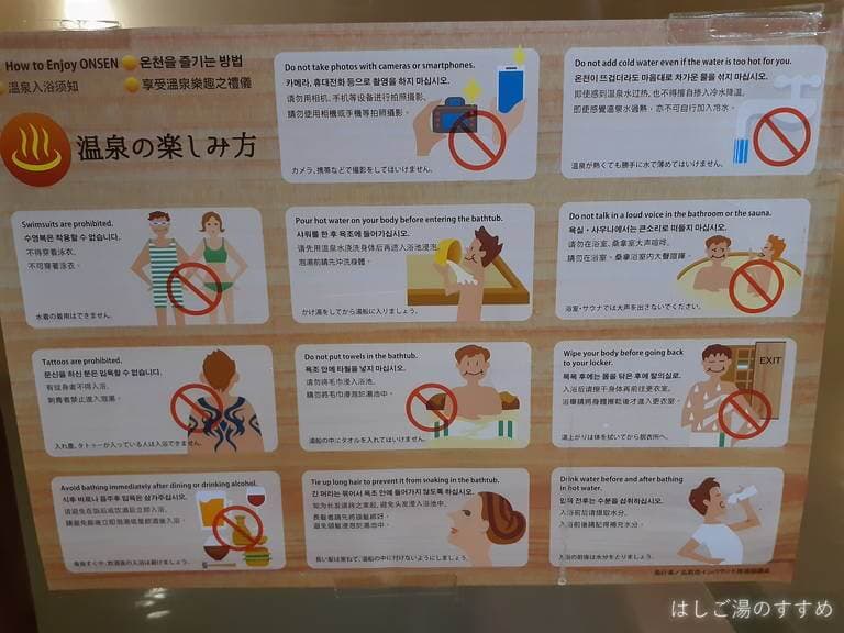 2022年1月訪問時の脱衣所に「温泉の楽しみ方」という掲示があり、その中に「撮影禁止」の項目がありました。今回は「人がいない時なら」ということで撮影の許可をいただきました。