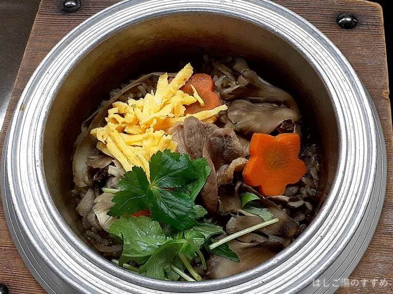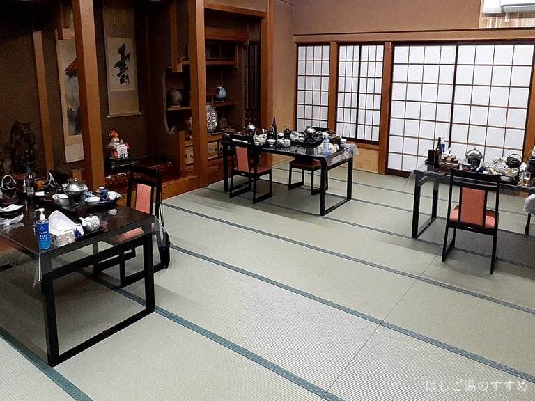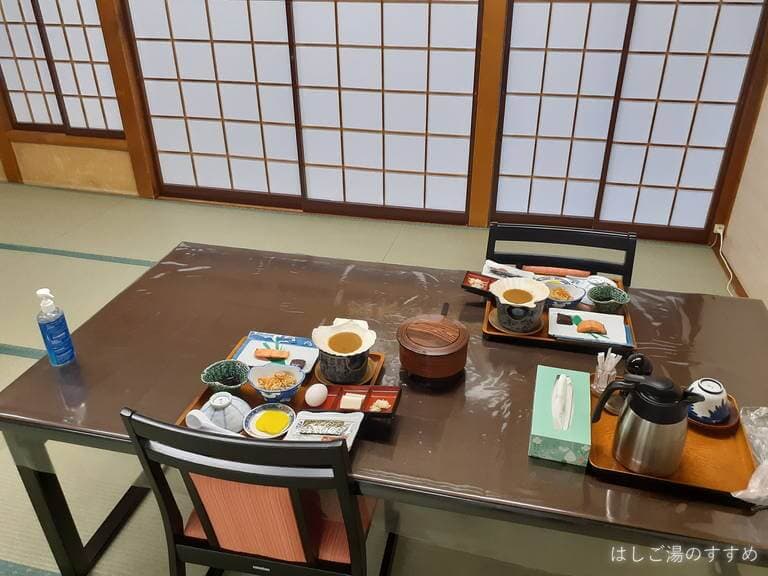 食事は大広間のような場所に椅子とテーブルが置かれ、他の部屋のお客さんと一緒にいただきました。おそらく同様の大広間のような部屋が他にもあって、いくつかのグループ分けをしているようでした。そのため他のテーブルとの間隔が広く、ゆったりと食事をいただくことができました。