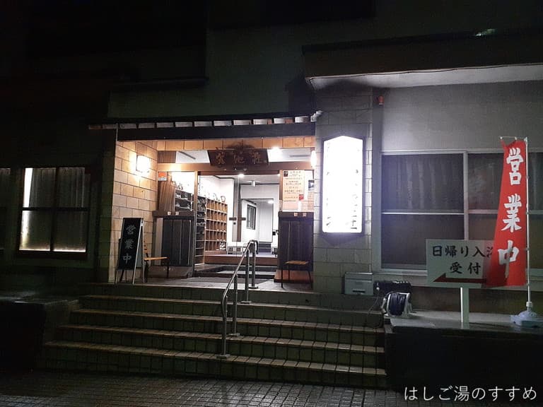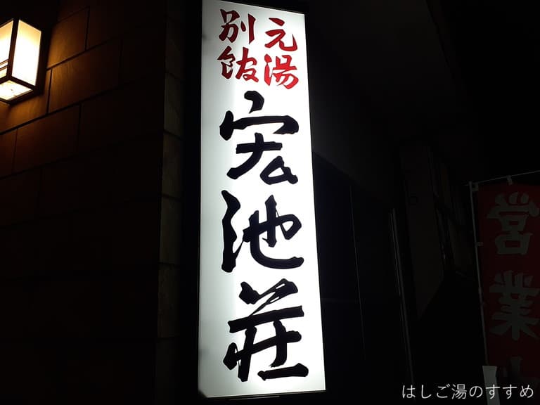すっかり暗くなった19時頃に立ち寄り入浴でお邪魔しました。周囲は住宅地なのかやけに静かで、宏池荘だけが明るく光っています。