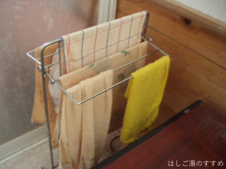 ▼温泉成分で染まったタオル