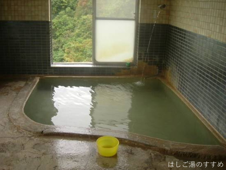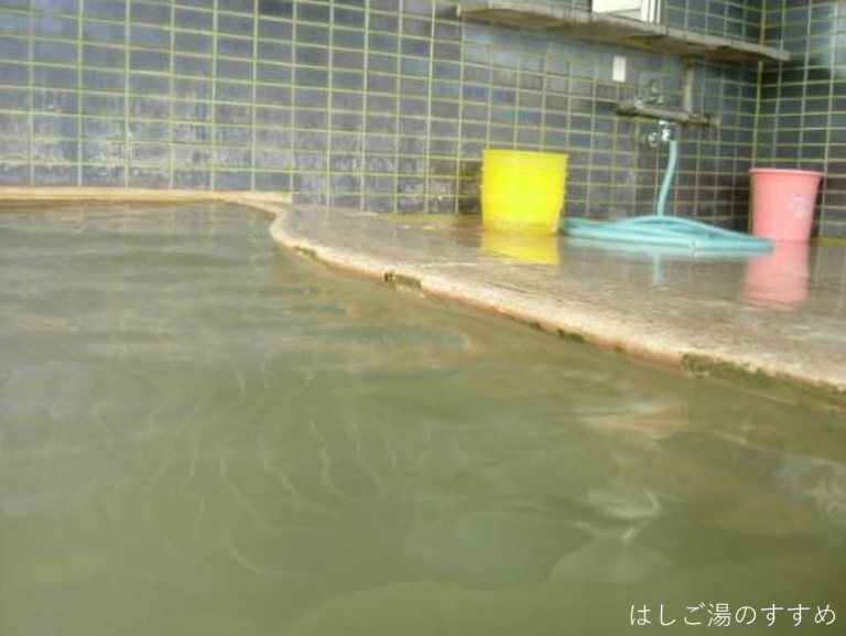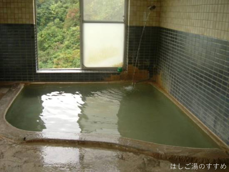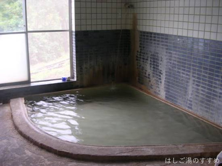 古びた館内には男女別の内湯がひとつづつあります。女性湯は4~5人サイズの扇形で、無色透明、激熱湯が打たせのように浴槽へと流し込まれています。湯が落ちる飛沫すら激熱で、なかなか湯口に近づけない程。少しばかりの差し水有りの掛け流し利用です。浴槽内の湯がほんのり白黄土濁りに見えたのは析出物の所為?さて、そっと湯に浸かると、これが驚く程のツルツルスベスベ!泡効果ではない、純正とでも言うべきツルツル感です。このスベ感には久々に興奮しました。湯は口に含むと、うっすらとダシ塩味。湯面からは独特の生臭さ(中山平でよく感じるような)が漂い、それでいて浴後は仄かな甘さが皮膚に残るのです。何も前知識はなく温泉仲間について行った形でしたが、とても心に残る良い湯でした。