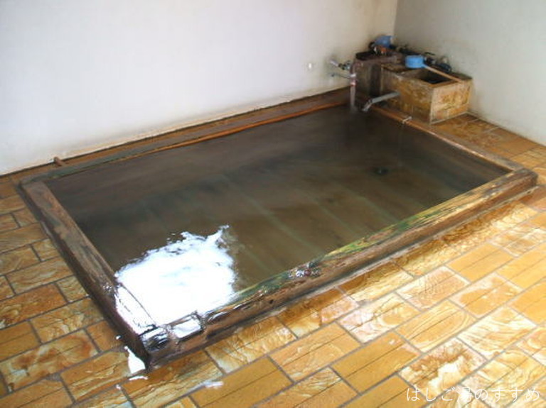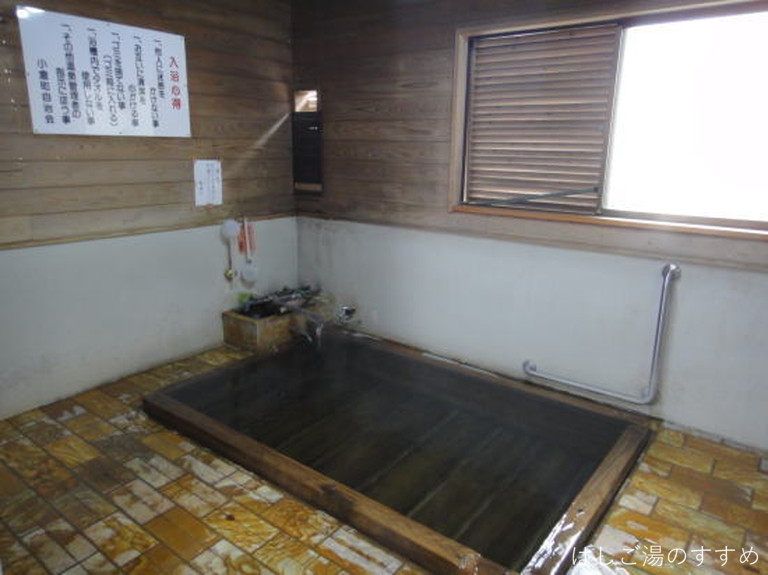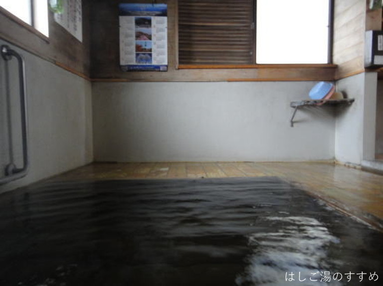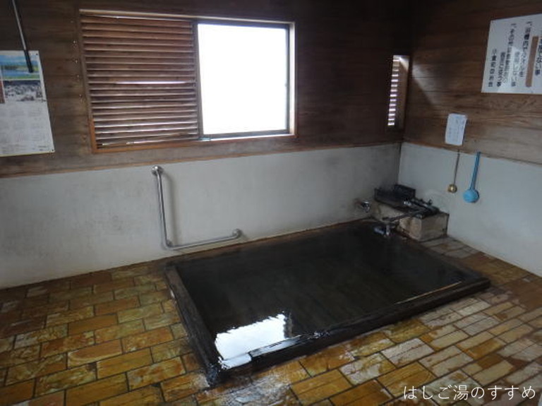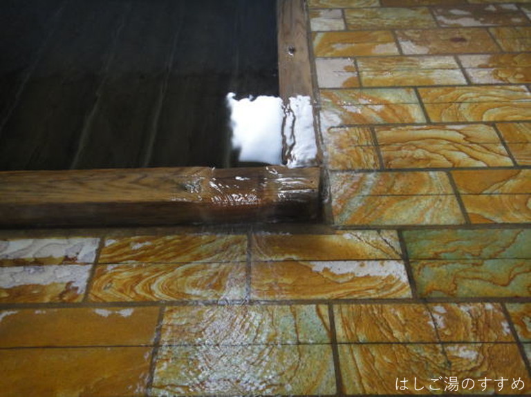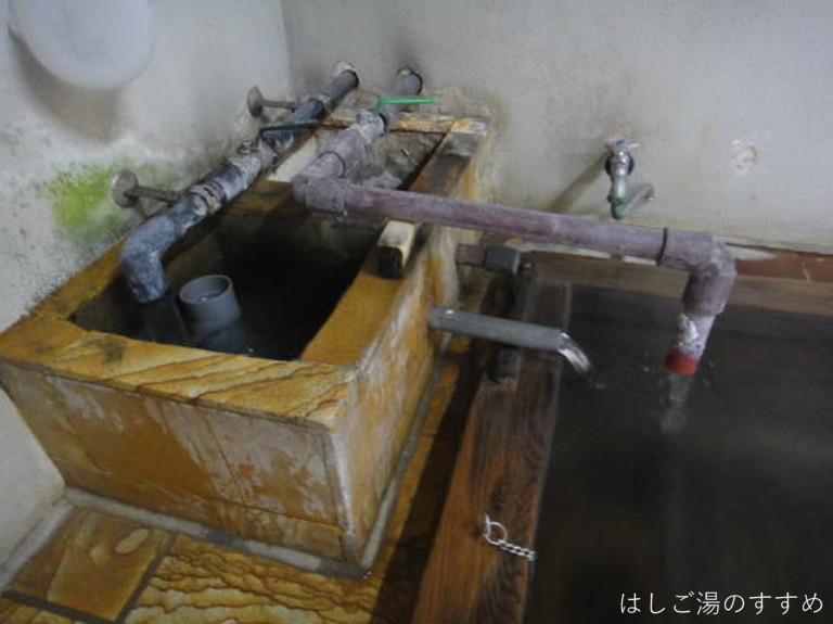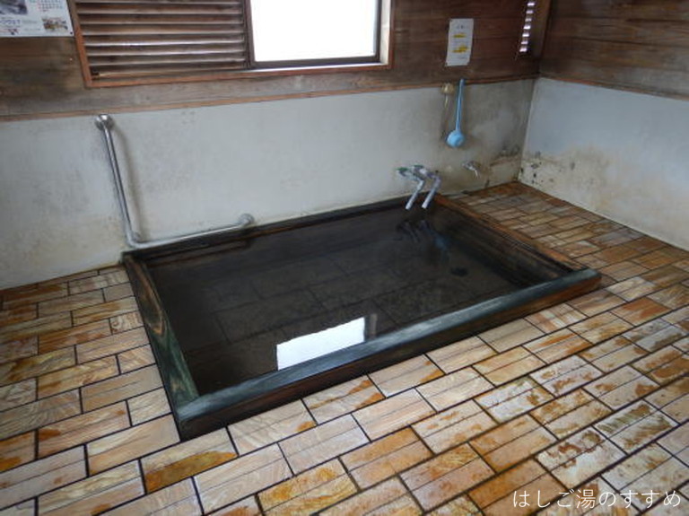 茶色の石板張り浴室に4~5人サイズの長方形木造浴槽がひとつあります。底までも全て木造で温もりが感じられる浴槽です。湯口より綺麗な無色透明湯が投入され浴槽内で適温(加水多め)、タマゴ臭が優しく香る軽い浴感の夏に良さそうなサッパリとした湯です。湯汚れなど一切ない湯で大変心地よい一浴となりました。ここは浴舎の雰囲気も良く、もっと頻繁に足を運びたいところです。