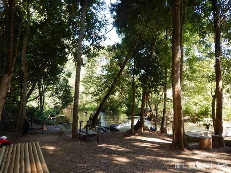 温泉宿が点在するパーイ温泉からスクーターで約30分ほどの場所にあるサイ・ガーム温泉です。木々に囲まれた自然豊かな森の中にある、透明に澄んだ綺麗な川底から湧出する温泉で、日本でいうところの群馬県尻焼温泉のような野湯です。