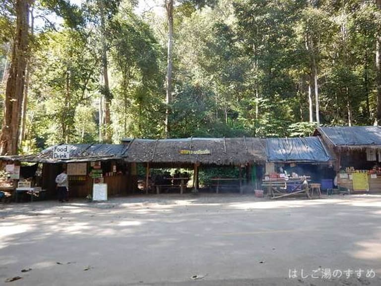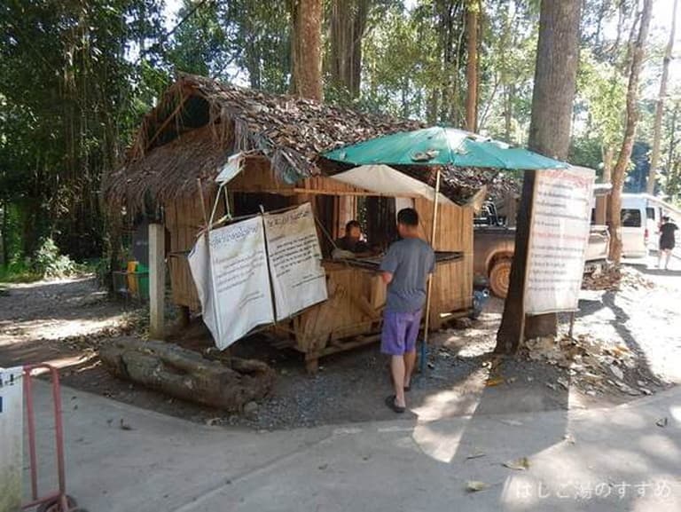 バタバタしつつもサイ・ガーム温泉に到着です。到着してみると小さな売店がいくつか並び、湯浴み着のレンタル、更衣室やトイレもあり完全な観光地でした。温泉への入り口には受付があり更にひとり20バーツを支払う必要があります。なかなかお金のかかる温泉です。