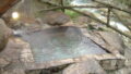 壁に沿いに4人+10人の長方形浴槽が並び、小浴槽はやや熱め、大浴槽はかなり熱めの湯が滔々と掛け流されていました。濃いコーラ色と塩気+重曹のもったりとした甘味が特徴の湯で、このテのタイプによく見られるアブクが表面に漂います。今回は真夏の訪問でしたが、湯の熱さもあり短時間の入浴ですっかりヘロヘロになってしまいました。