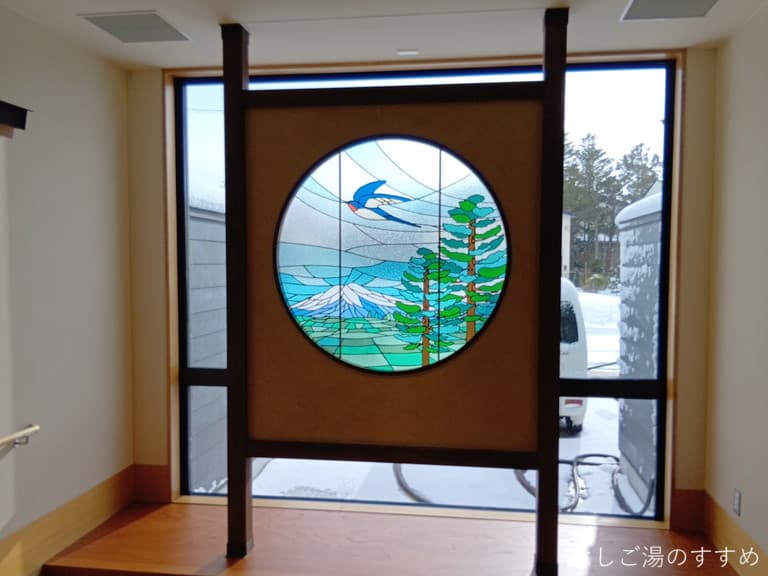 ▼このステンドグラスは岩木山かな?